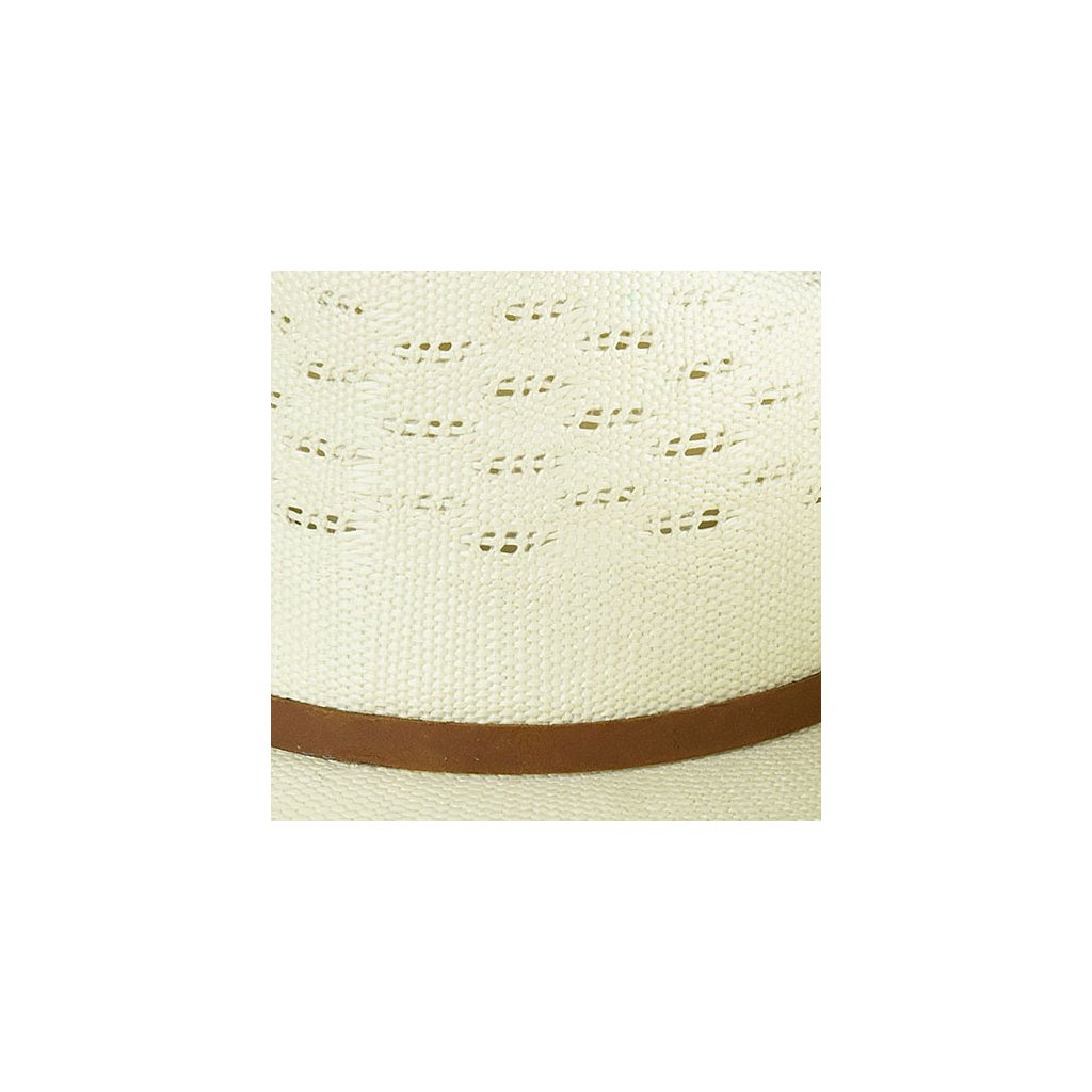 Dominantným prvkom je precízne perforovaná ventilačná koruna vo vzore klasov. Nejde len o dizajnový detail, ale o funkčné riešenie pre horúce dni. Klobúk si drží tvar, je pevný, a napriek tomu ľahký, takže ho bez problémov unesiete celý deň.