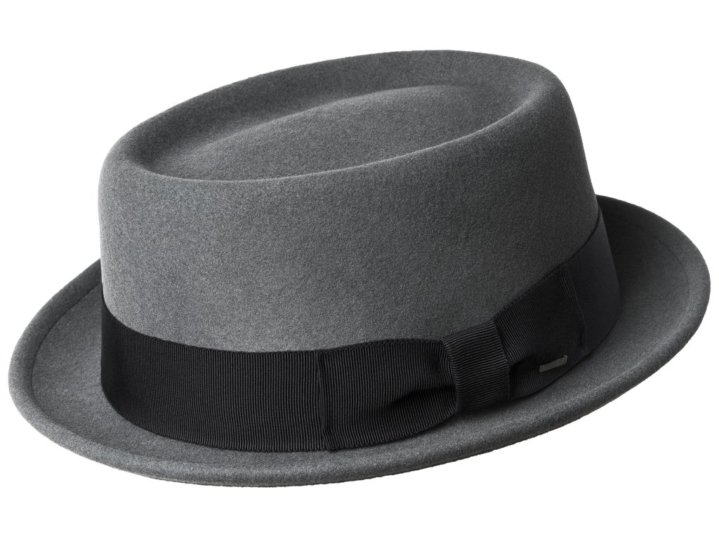 Bailey Darron – sivý pánsky klobúk typu pork pie z plsti LiteFelt