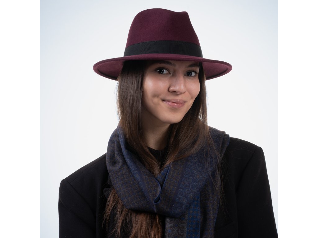 Bordeaux klobúk plstené s kašmírom - krep s klopou