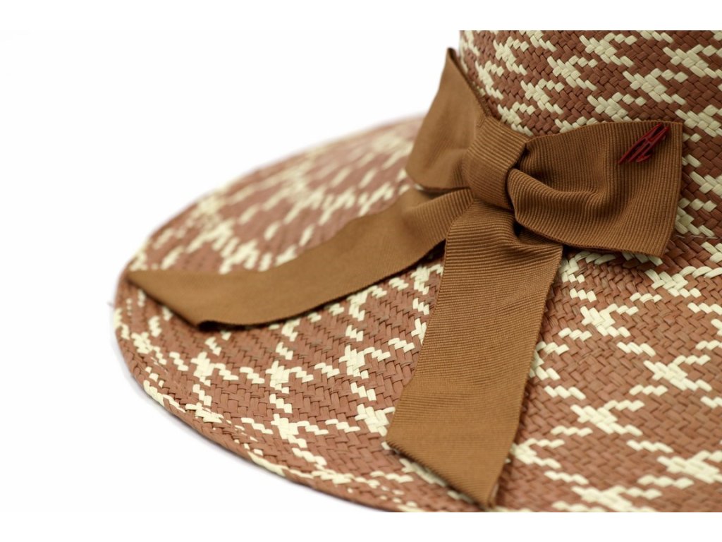 Objavte krásu tradičnej ručnej práce s klobúkom Carlsbad – pravým panamským klobúkom, ktorý spája nadčasovú eleganciu s majstrovským remeselným spracovaním. Tento model vyniká jemným vzorom v prírodnej a hrdzavo hnedej farbe a je doplnený štýlovou látkovou mašľou pre ženský a sofistikovaný vzhľad.