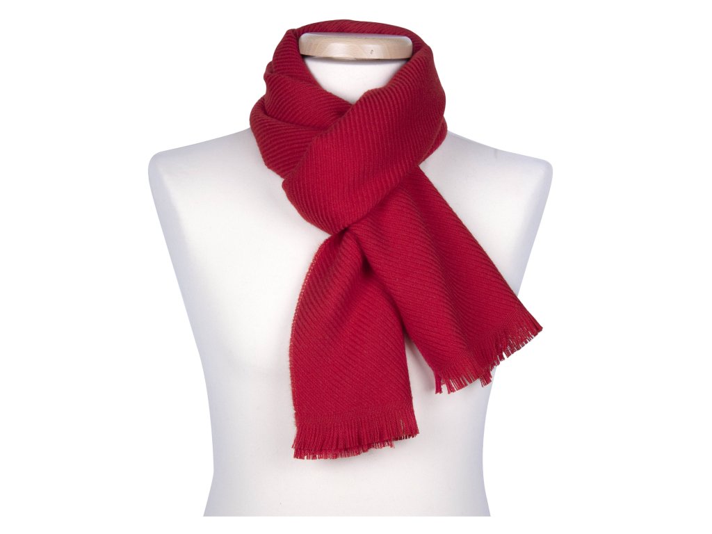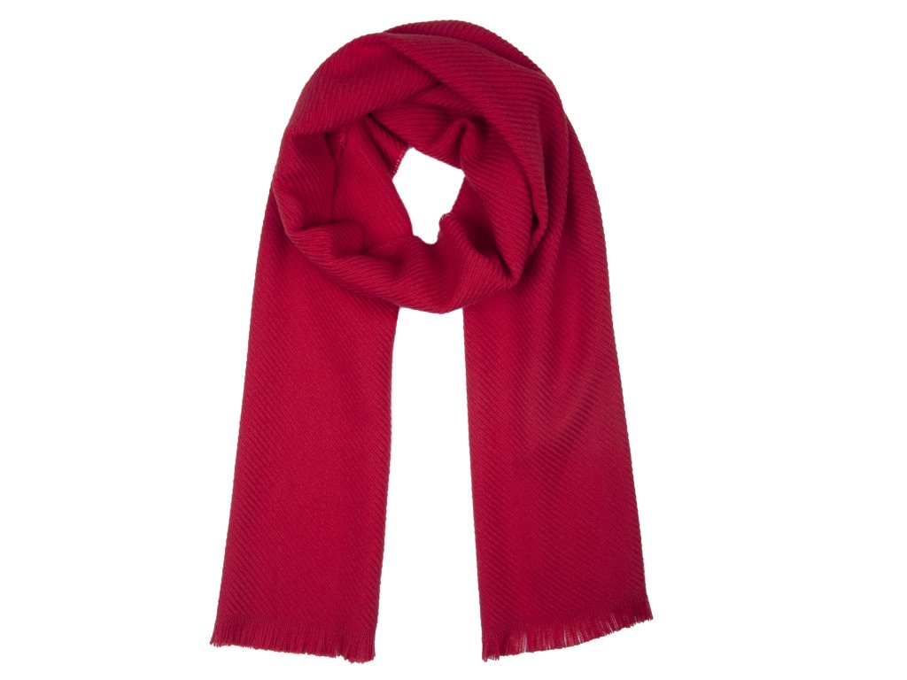 Sýto červená šatka z jemnej vlny Ma.Al.Bi. z Talianska. Hrejivá, elegantná a sebavedomá – ideálna k zimnému kabátu.