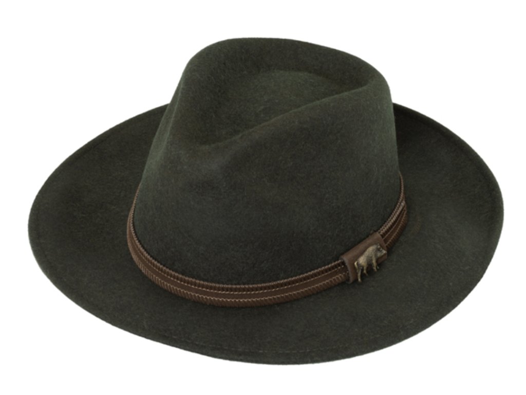 Cestovné klobúk vlnený od Fiebig - olivový s koženou stuhou