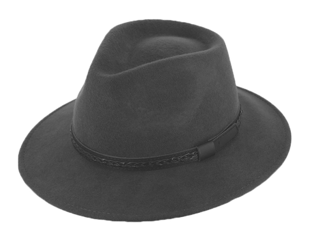 Cestovný klobúk vlnený od Fiebig - šedý s koženou stuhou - širák