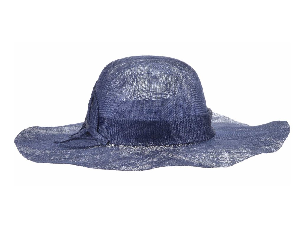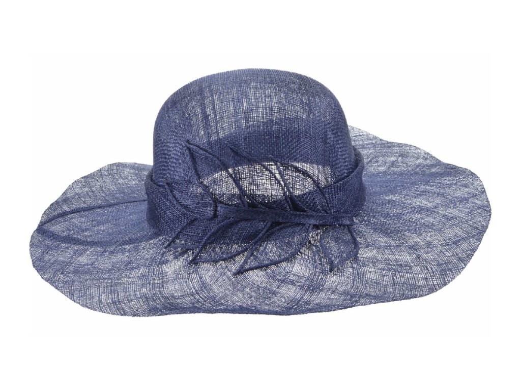 Cloche modrý slávnostný klobúk s ozdobou - zo sisalovej slamy