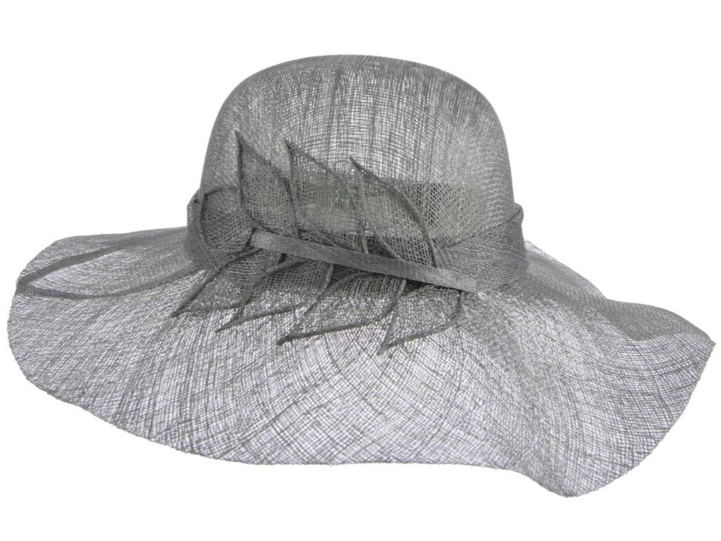 Cloche sivo-zelený slávnostný klobúk s ozdobou - zo sisalovej slamy