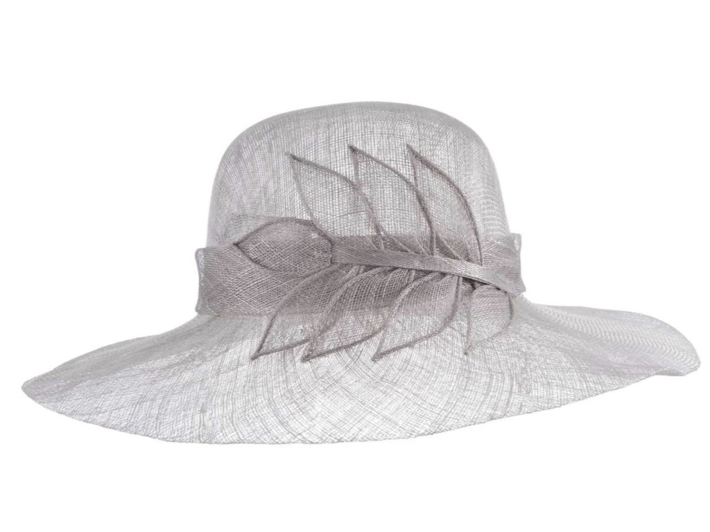 Cloche sivý slávnostný klobúk s ozdobou - zo sisalovej slamy