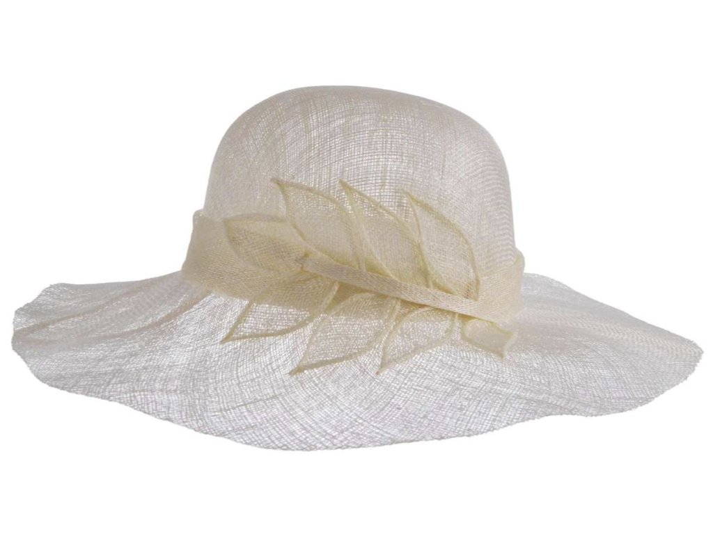 Cloche smotanový slávnostný klobúk s ozdobou - zo sisalovej slamy