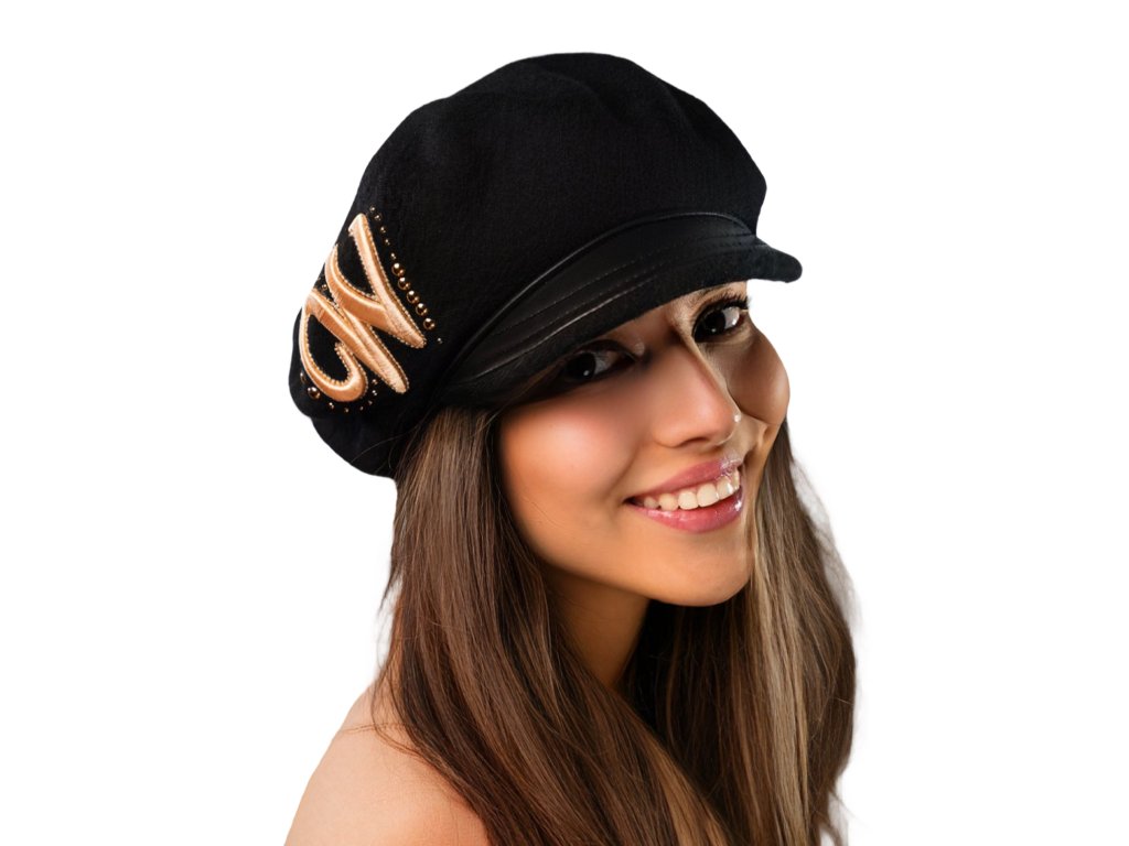 Jedinečná čierna zimná čiapka s kšiltom z najjemnejšej vlny s certifikátom Woolmark, ktorá sa dokonale prispôsobí každej veľkosti hlavy. Táto čierna dámska bejzbalová čiapka zaujme nielen precíznou ručnou výrobou, ale aj originálnym dizajnom. Zdobia ho zlaté detaily a nápisy v kaligrafickom štýle, čo vytvára elegantný a zároveň moderný vzhľad. Kšilt je vyrobený z pevného materiálu, ktorý dodáva čiapke moderný charakter, a zdobenie s jemnými detailmi umocňuje luxusný charakter výrobku.