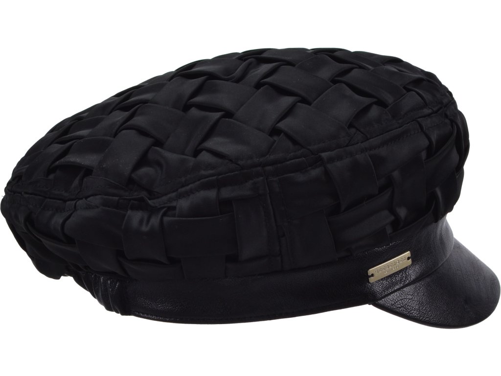 Dámska saténová bekovka s koženkovým šiltom – čierna