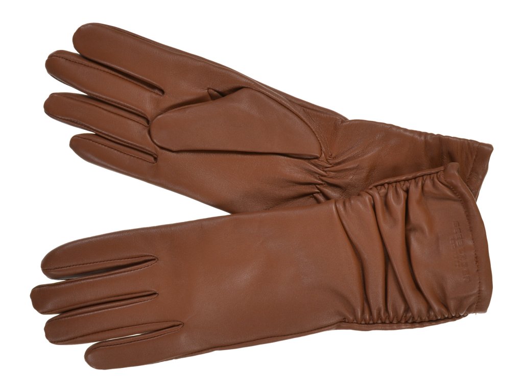 Dámske karamelové kožené rukavice Seeberger s riasením
