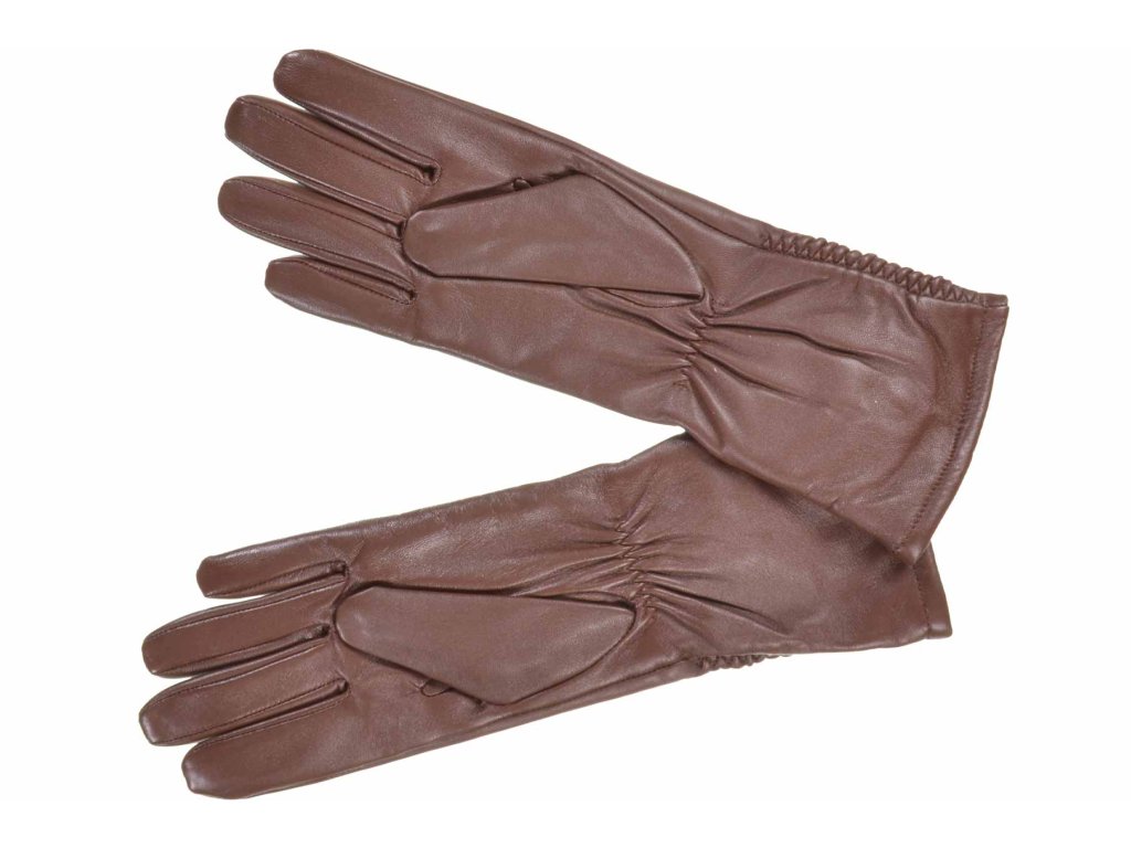 Dámske kožené rukavice Seeberger s riasením – hnedé