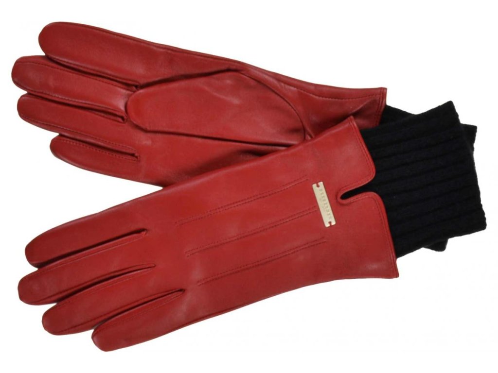 Dámske vínové kožené rukavice s kašmírovou podšívkou a úpletom