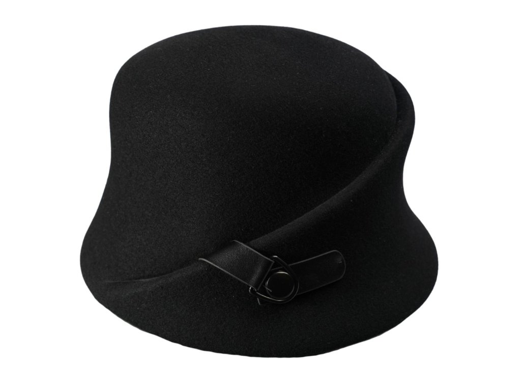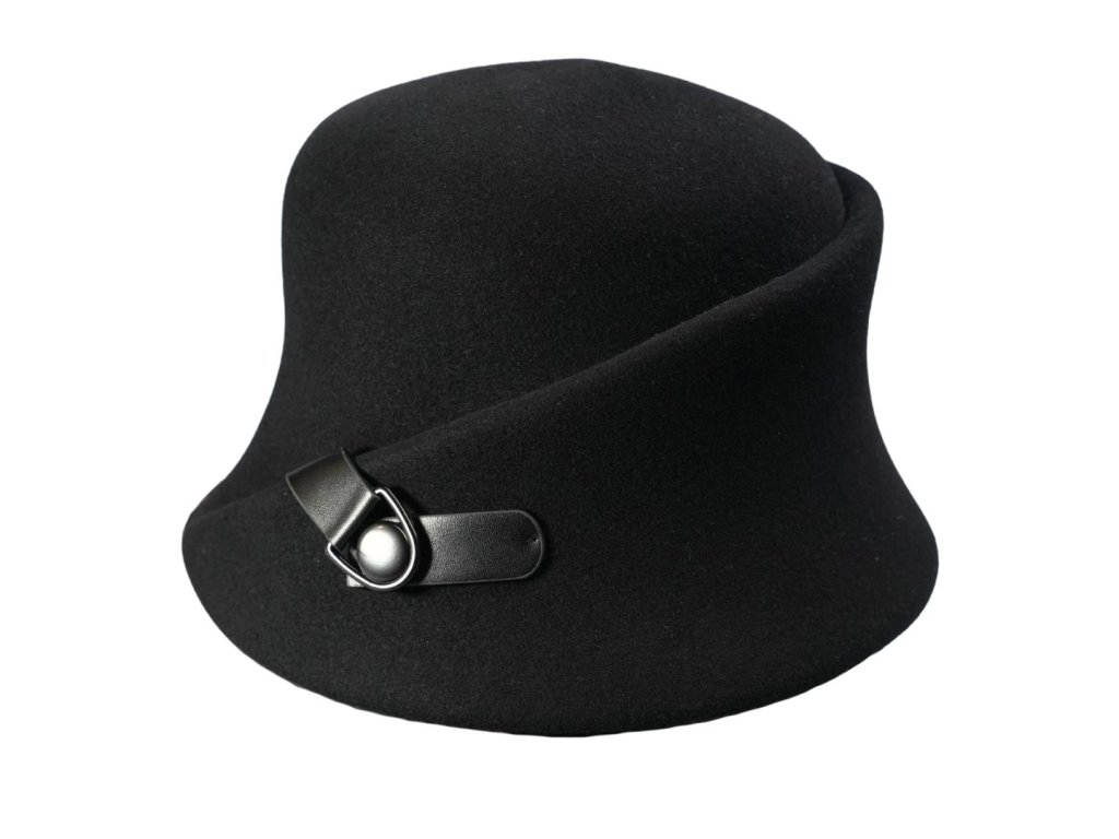 Jeho typický tvar cloche jemne kopíruje líniu hlavy a prepožičiava siluete ženský, pôvabný vzhľad. Šikmo vedený okraj a kožená ozdoba s perlovým detailom dodávajú klobúku decentnú noblesu, ktorá sa hodí ako k kabátu, tak k vlnenému plášťu.