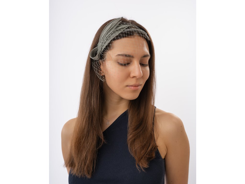 Dámsky fascinátor Seeberger so závojom - zeleno-šedý
