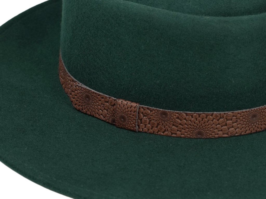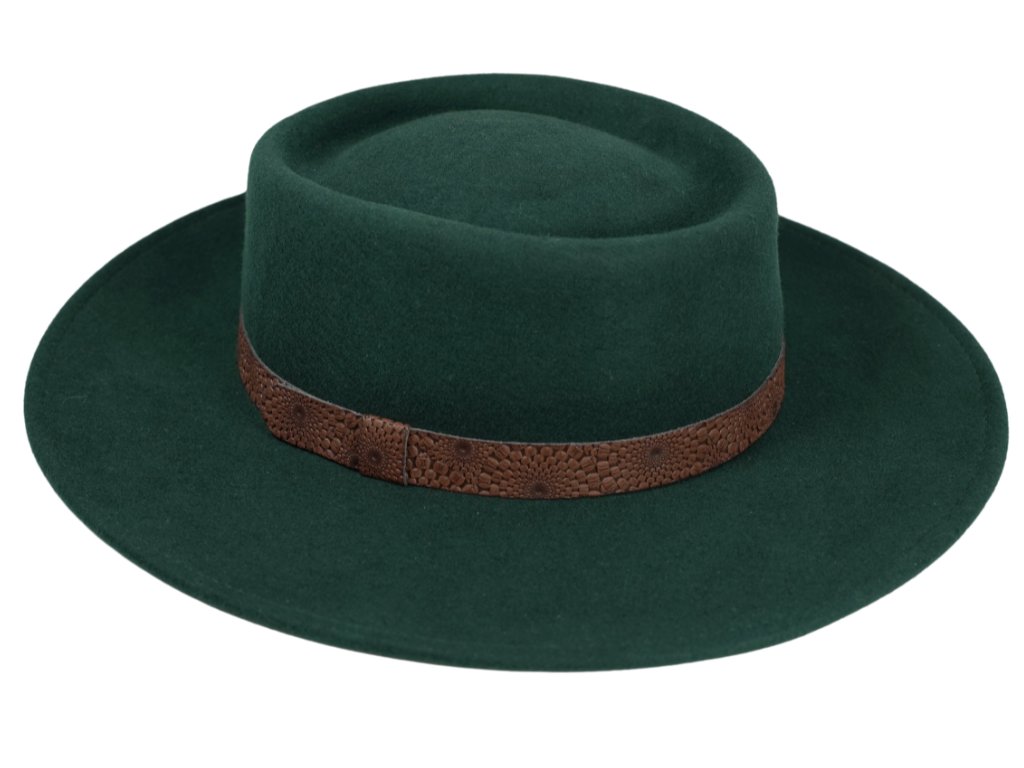 Dámsky klobúk vlnený od Fiebig s širším okrajom - zelený s hnedou koženou stuhou