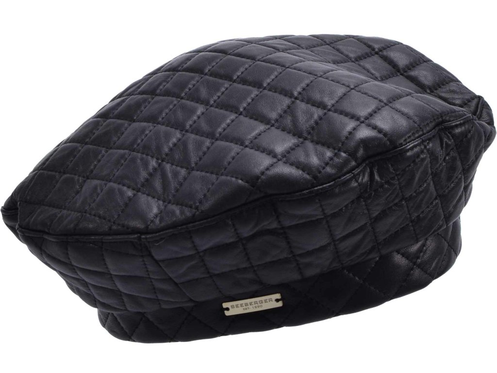 Dámsky kožený baret s prešívaním – čierny