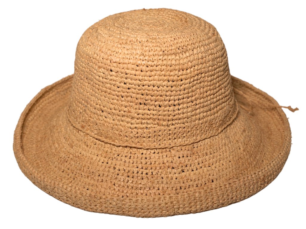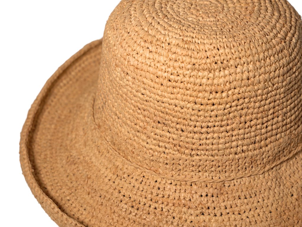 Dámsky letný nekrčivý slamený (raffie) klobúk Cloche - Crochet Cloche