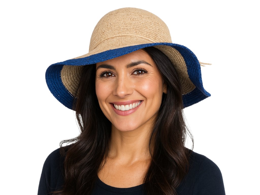 Dámsky letný nekrčivý slamený klobúk s farebným okrajom - Crochet Royal Blue