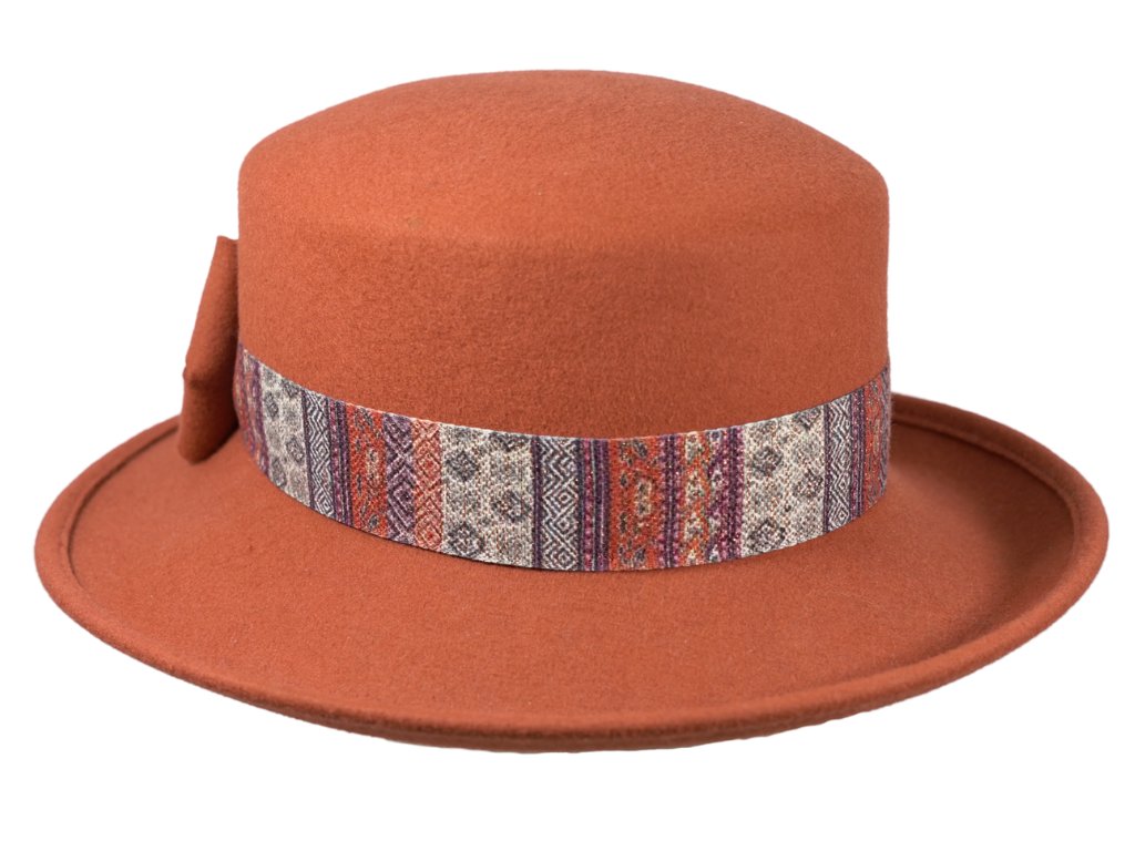Luxusný francúzsky klobúk, pevná a jemná plsť. Kožený ozdobný opasok.