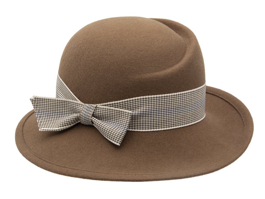 Dámsky nemačkavý hnědý klobouk "Palmira" je exkluzivním doplňkem do šatníku každé ženy s vkusem. Tento elegantný kúsok je vyrobený z pevnej, ale úžasne ľahkej vlnenej plsti, ktorá sa nemačká a udržiava si svoj tvar aj napriek dlhodobému noseniu. Jej hlavným znakom je originálna sivá stuha a sýta, sýta farba, ktorá dodá každému oblečeniu živý kontrast.