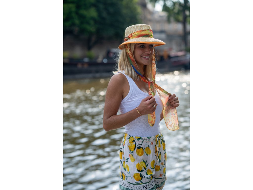 Dámsky slamený klobúk Fléchet so zaväzovaním (Orange)