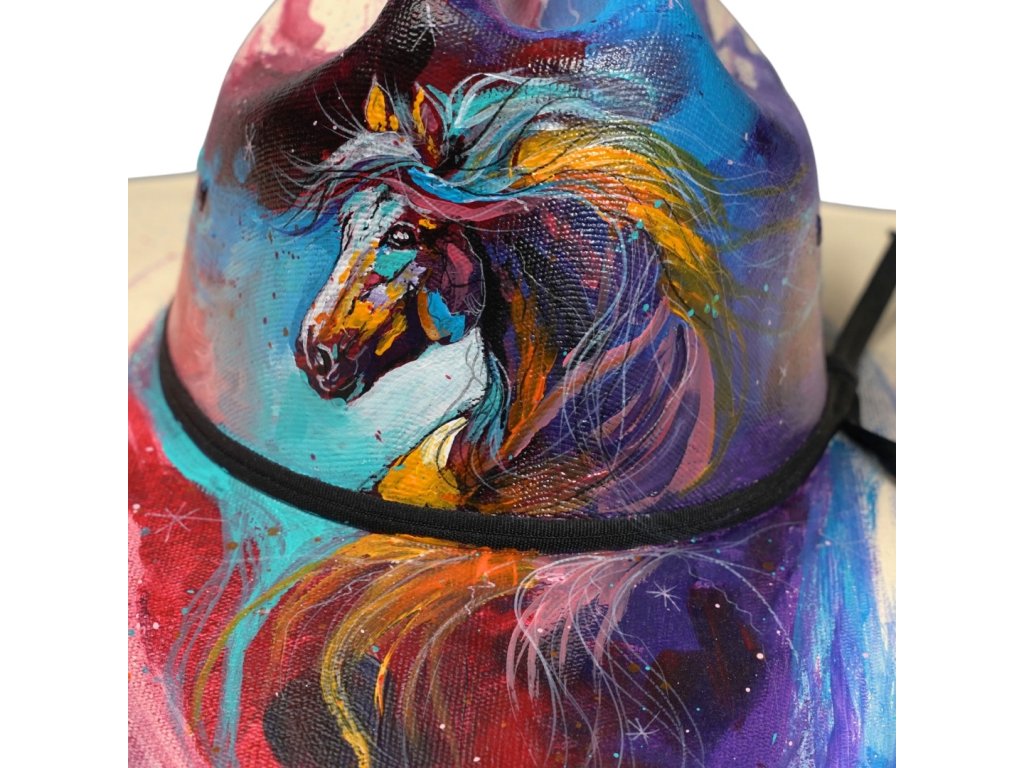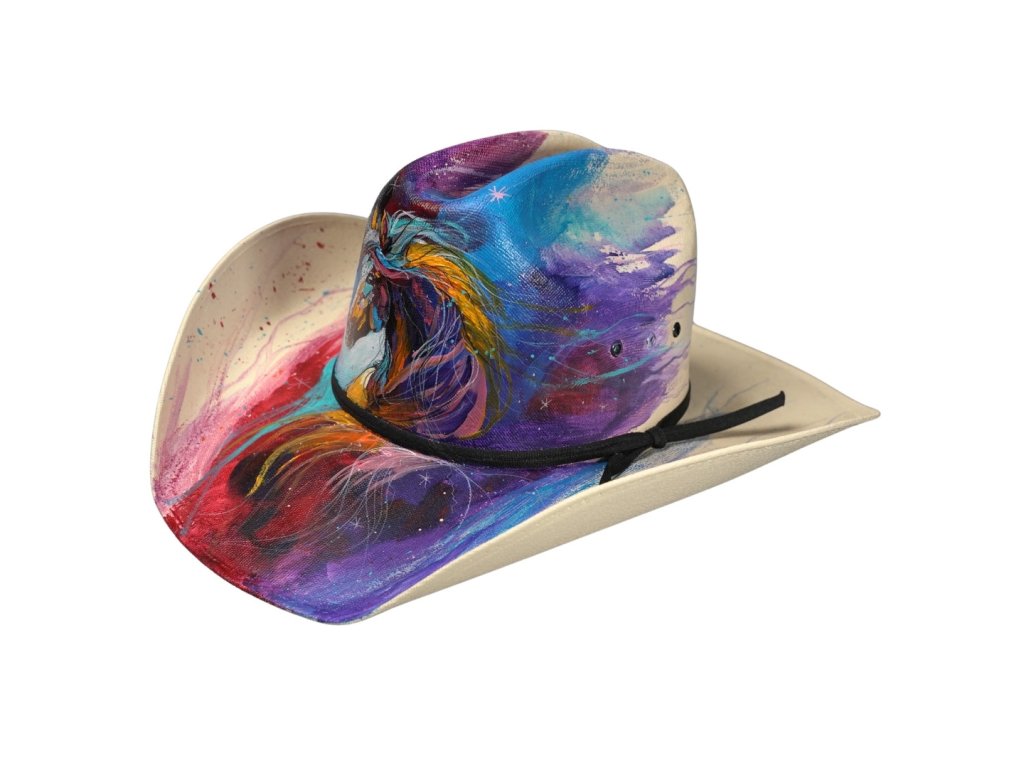 Základný tvar westernového klobúka bol ručne vytvarovaný v Carlsbad Hat Atelier, kde sa stal plátnom pre umelkyňu HP Art. Tá naň preniesla svoj osobitý výtvarný štýl – výrazný, farebný a plný emócií.