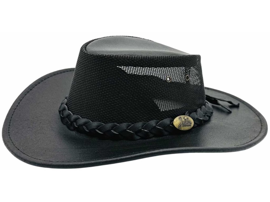 Keď sa spojí funkčnosť a austrálsky štýl, vznikne klobúk ako Jacaru Dingo Koolaroo 116. Krempa a horná časť koruny sú vyrobené z kvalitnej hovädzej kože, zatiaľ čo bočná časť tvorí odolná čierna sieťovina, ktorá prepúšťa vzduch. Výsledkom je klobúk, ktorý vás ochráni pred slnkom a pritom nezavarí hlavu.