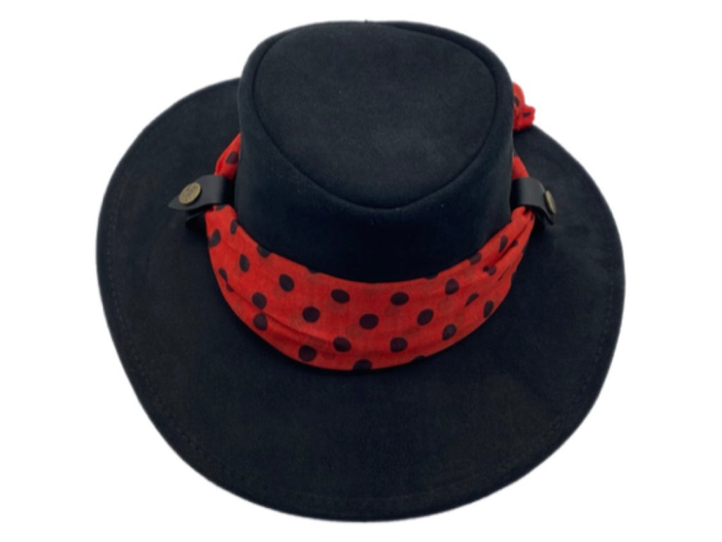 Jacaru Jillaroo čierny – dámsky klobúk z brúsenej kože s šatkou