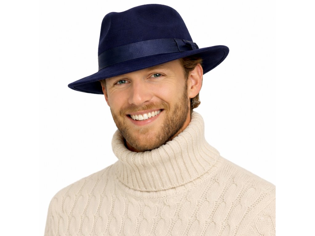 Kašmírový modrý luxusný klobúk Fiebig - limitovaná kolekcia Fiebig