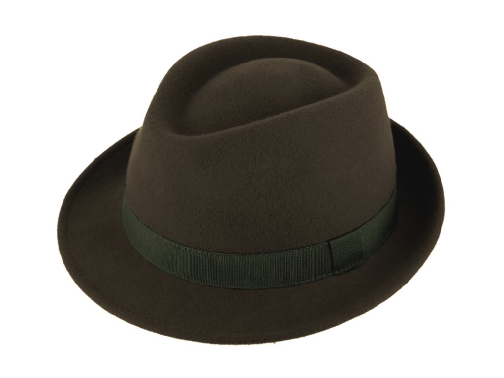 Klasický trilby klobúk vlnený s malou krempou - olivový s olivovou stuhou