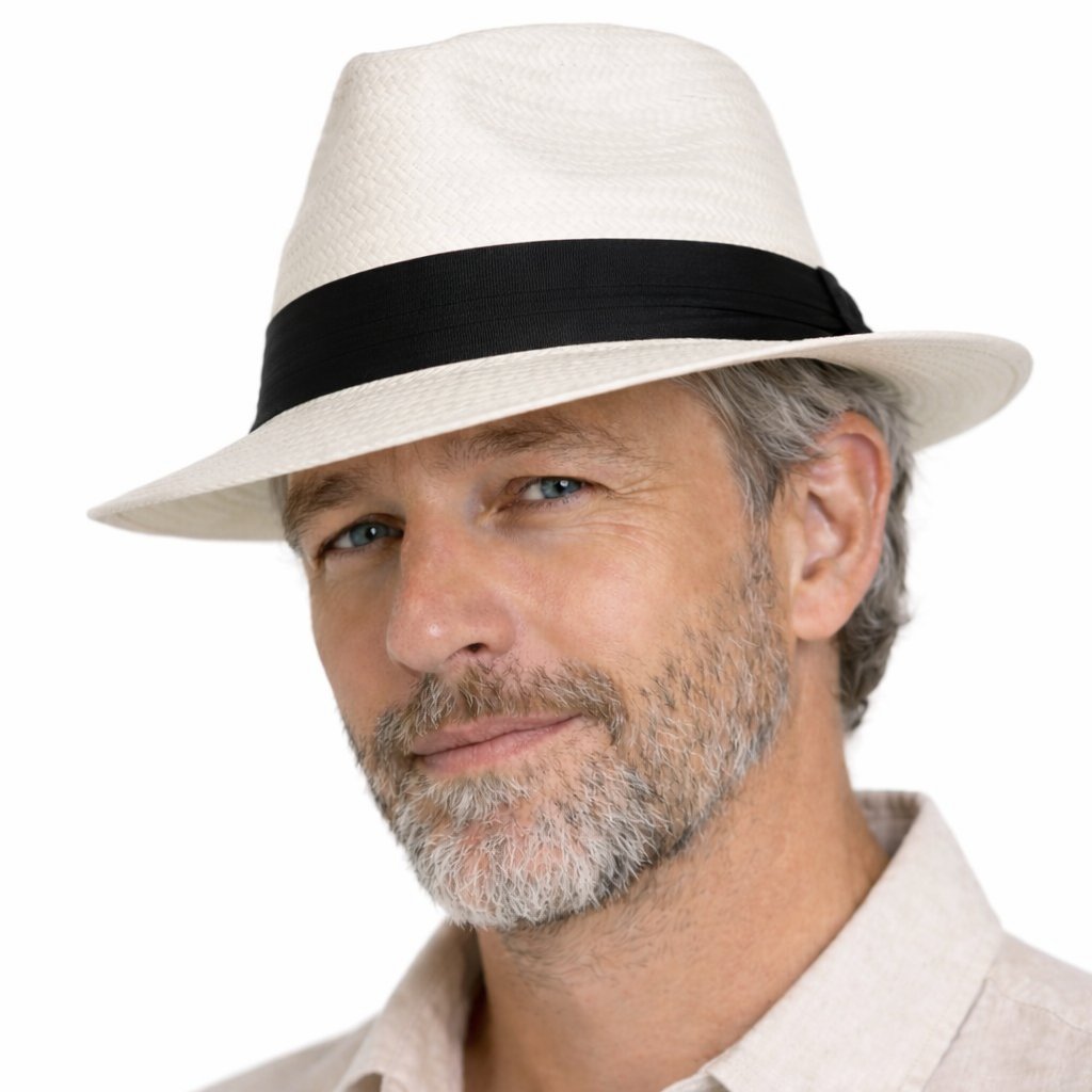 Tento letný klobúk vychádza z tradičného panamského štýlu, ktorý je obľúbený pre svoju ľahkosť, vzdušnosť a elegantnú siluetu. Prirodzená svetlá farba pôsobí čisto a univerzálne, vďaka čomu sa klobúk ľahko kombinuje s letným oblečením. Výrazná čierna stuha dodáva klobúku charakter a ľahko formálny akcent, bez toho, aby pôsobil ťažko alebo prehnane.