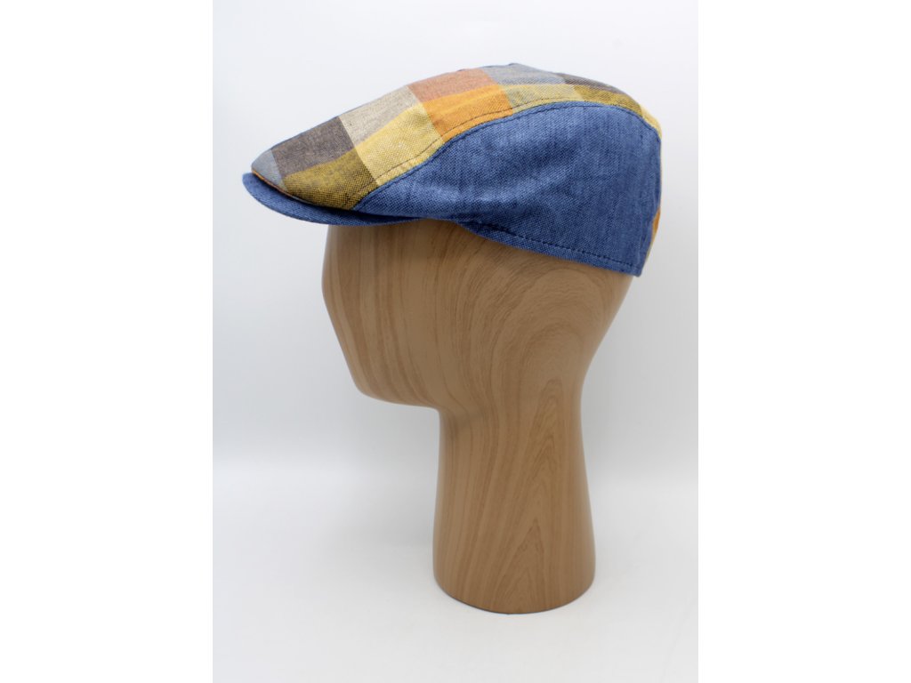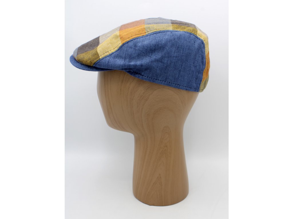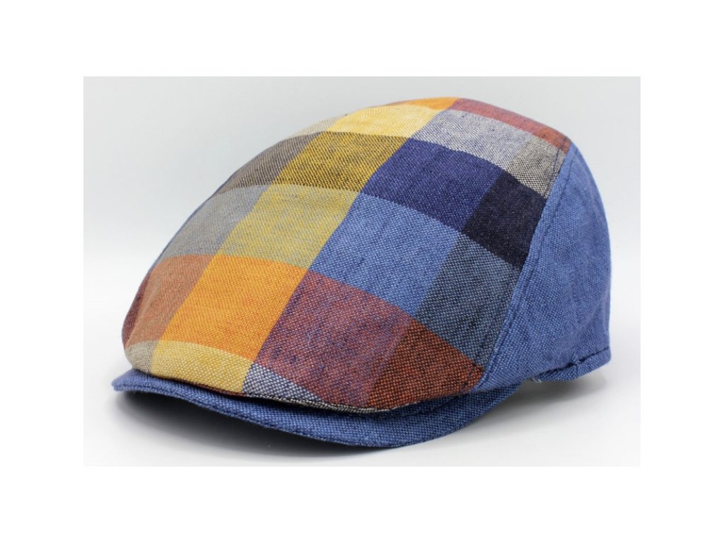 Ľanová kockovaná letná bekovka - driver cap Fiebig modrá