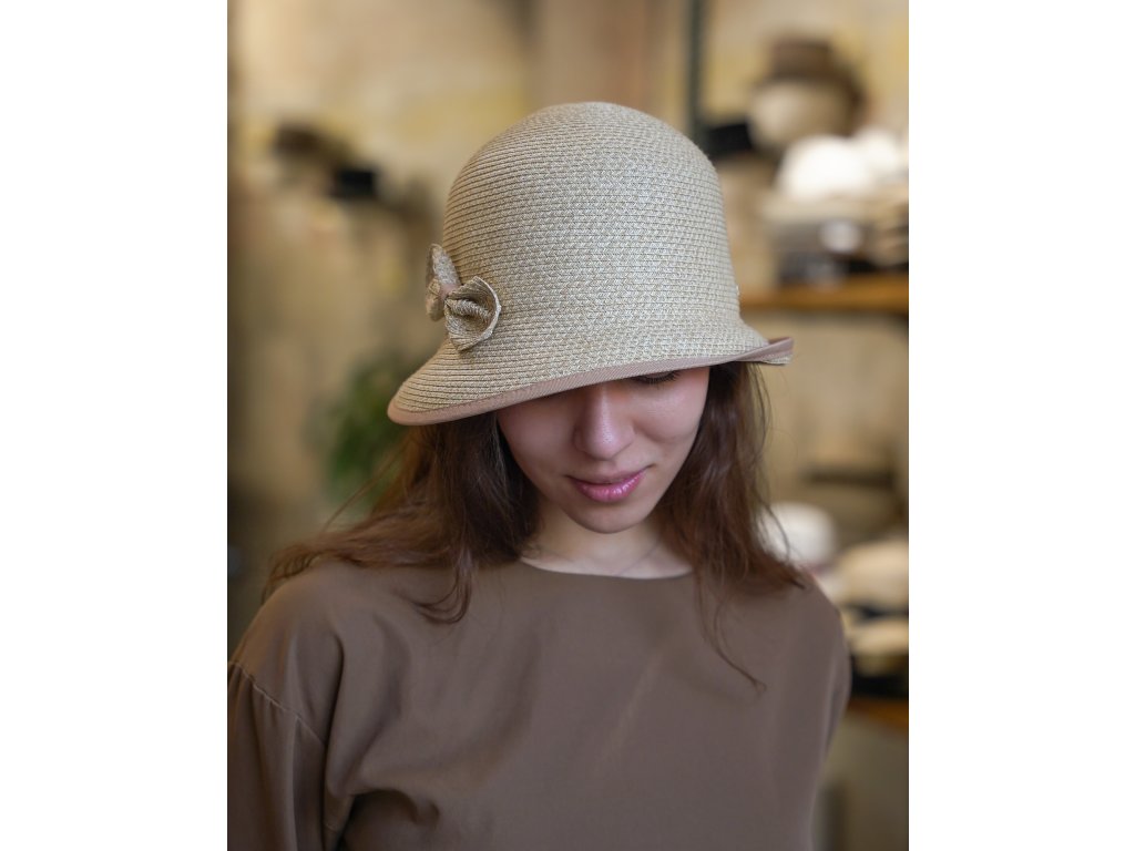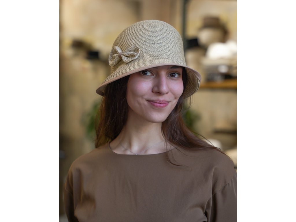 Letný dámsky nemačkavý béžový klobúk s mašličkou - cloche - Seeberger