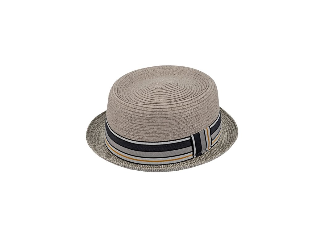 Letný klobúk Pork Pie – béžový s pruhovanou stuhou