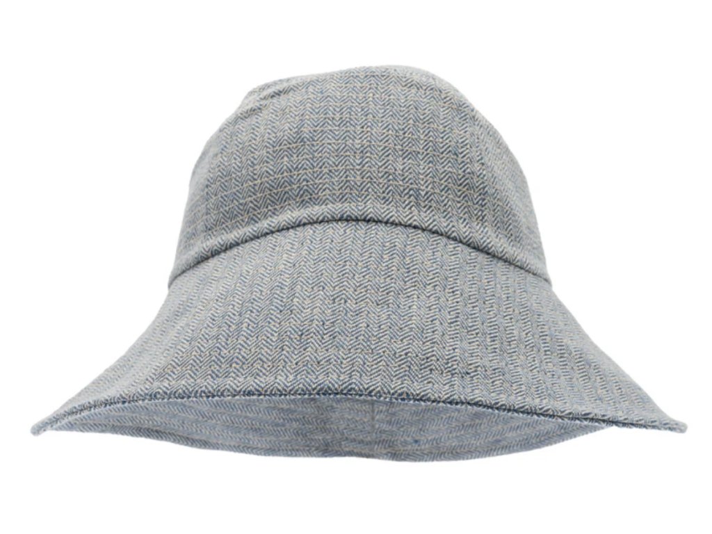 Letný svetlo modrý ľanový klobúk so širšou krempou - Elsie Bucket Hat