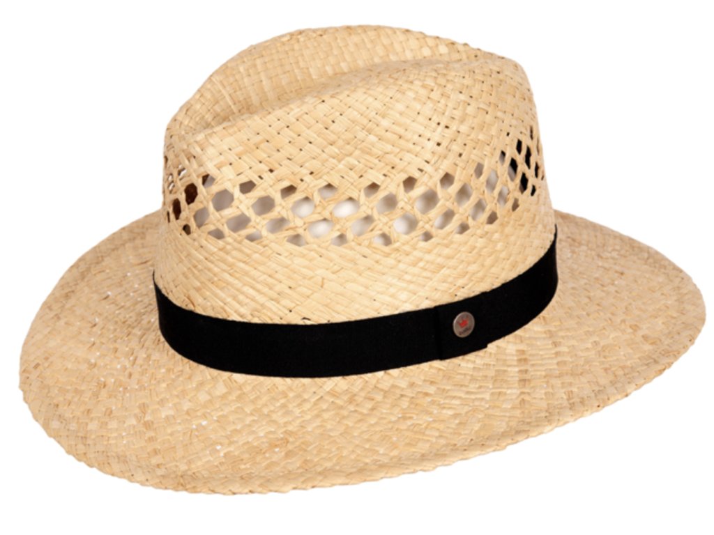 Ľahký traveller klobúk z prírodnej rafia, ideálny pre horúce letné dni. Perforovaný pás v korune zaisťuje príjemnú ventiláciu, takže hlava zostáva svieža aj pri dlhom nosení. Klasická čierna ripsová stuha dodáva klobúku elegantný kontrast a nadčasový štýl. Dostupný v troch veľkostiach, vhodný na cestovanie, do mesta aj k moru.