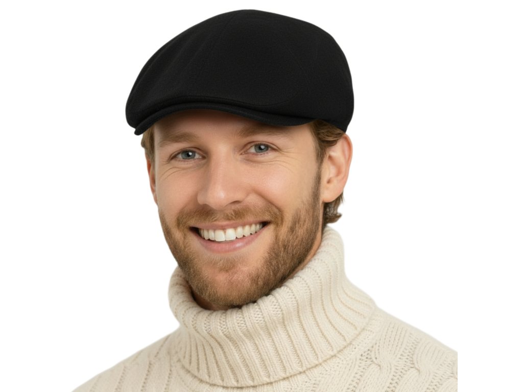 Luxusná čierna kašmírová bekovka od Fiebig - Driver cap Cashmere