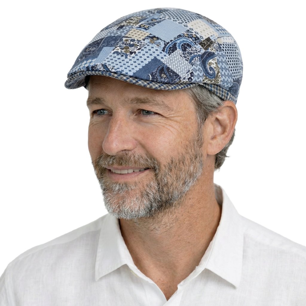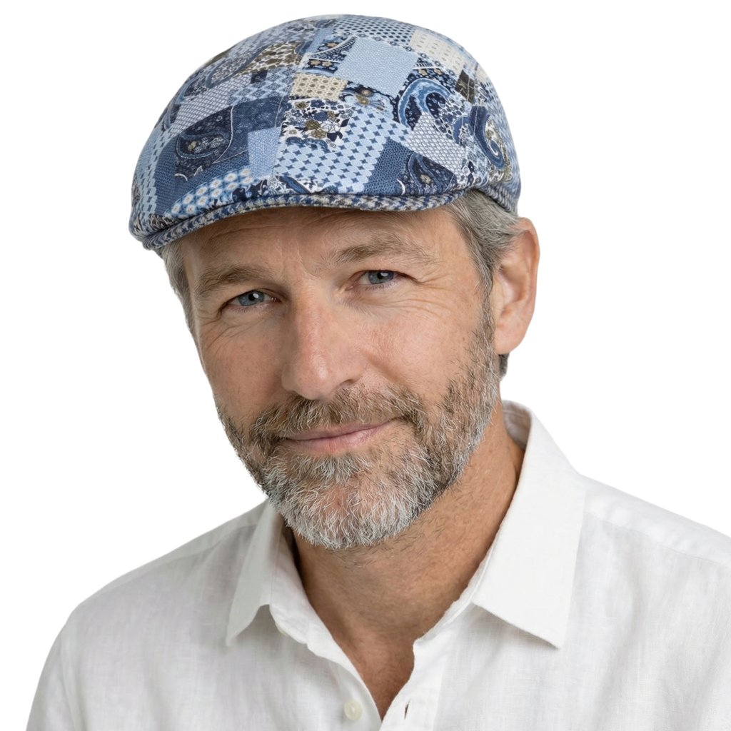 Táto pánska čiapka typu šiltovka od nemeckej značky Fiebig je ideálnou voľbou pre mužov, ktorí chcú do svojho šatníka pridať štýlový a zároveň originálny doplnok. Výrazný patchwork vzor kombinuje rôzne modré odtiene a ornamentálne motívy, ktoré vytvárajú veľmi zaujímavý a elegantný vzhľad.