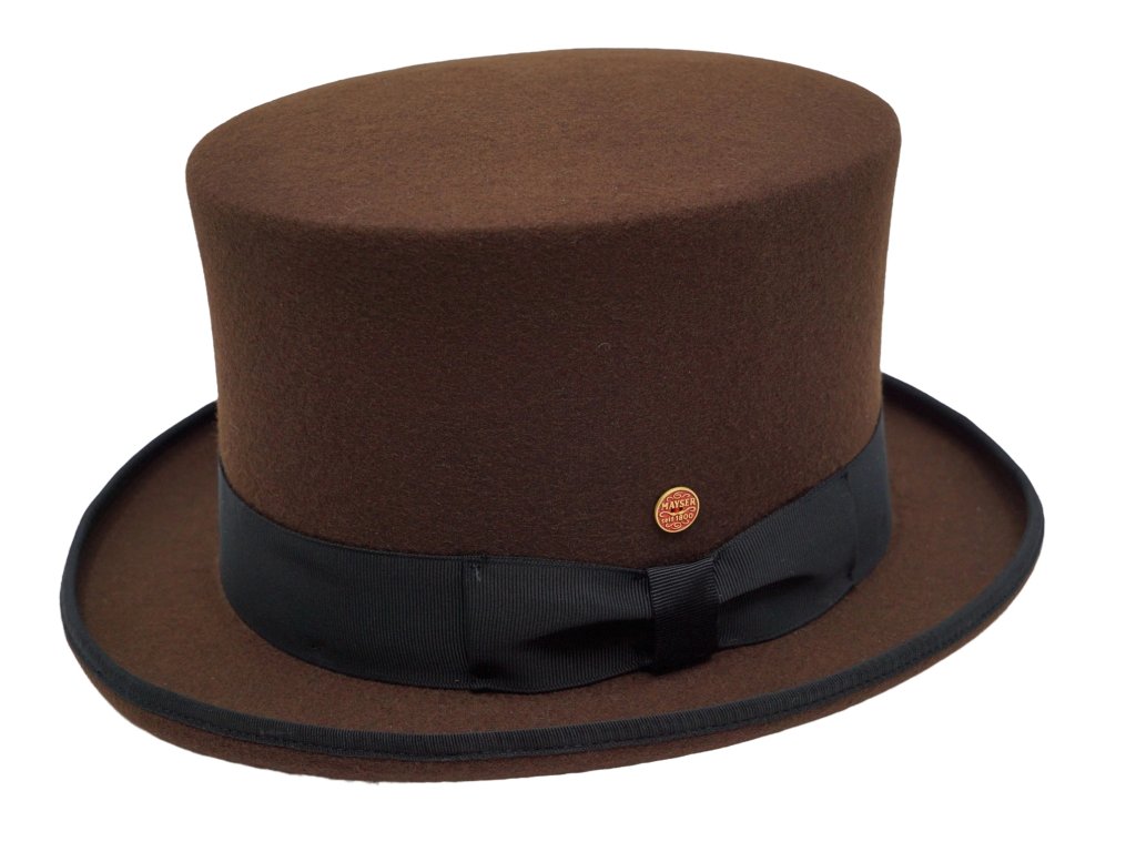 Ako najklasickejší z klasických klobúkov a najspoločenskejší zo spoločenských klobúkov priťahujú cylindre pozornosť a často sú právom obdivované. Luxusný hnedý klobúk Mayser - Top Hat predstavuje vrchol nadčasovej spoločenskej módy a poskytne vám nezameniteľný a originálny vzhľad.