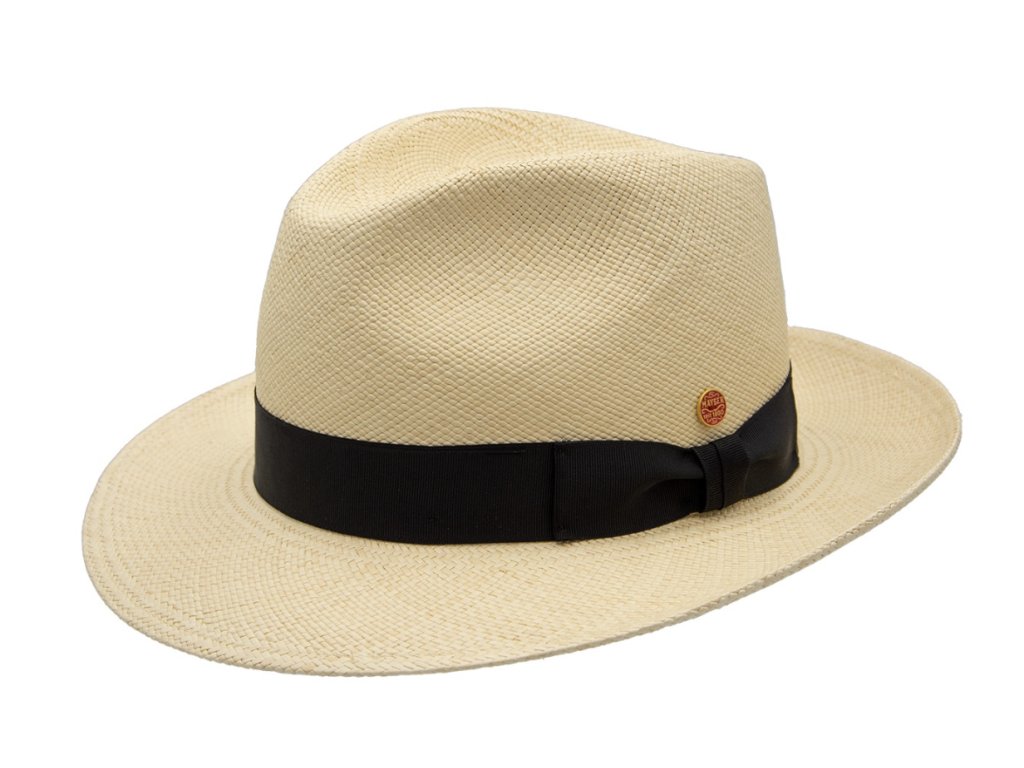 Luxusný klobúk Fedora s čiernou stuhou - ručne pletený, UV faktor 80 - Ekvádorská panama - Mayser Albenga