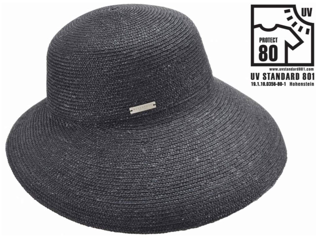 Luxusný slamený dámsky čierny klobúk - cloche so skrátenou krempou vzadu