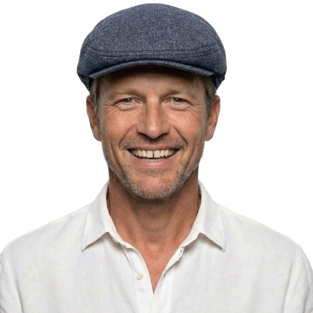 Ľahká modrá šiltovka s klasickým vzorom rybej kosti je ideálnou voľbou na jar a leto. Ponúka prirodzený komfort, priedušnosť a nadčasový štýl na každodenné nosenie.