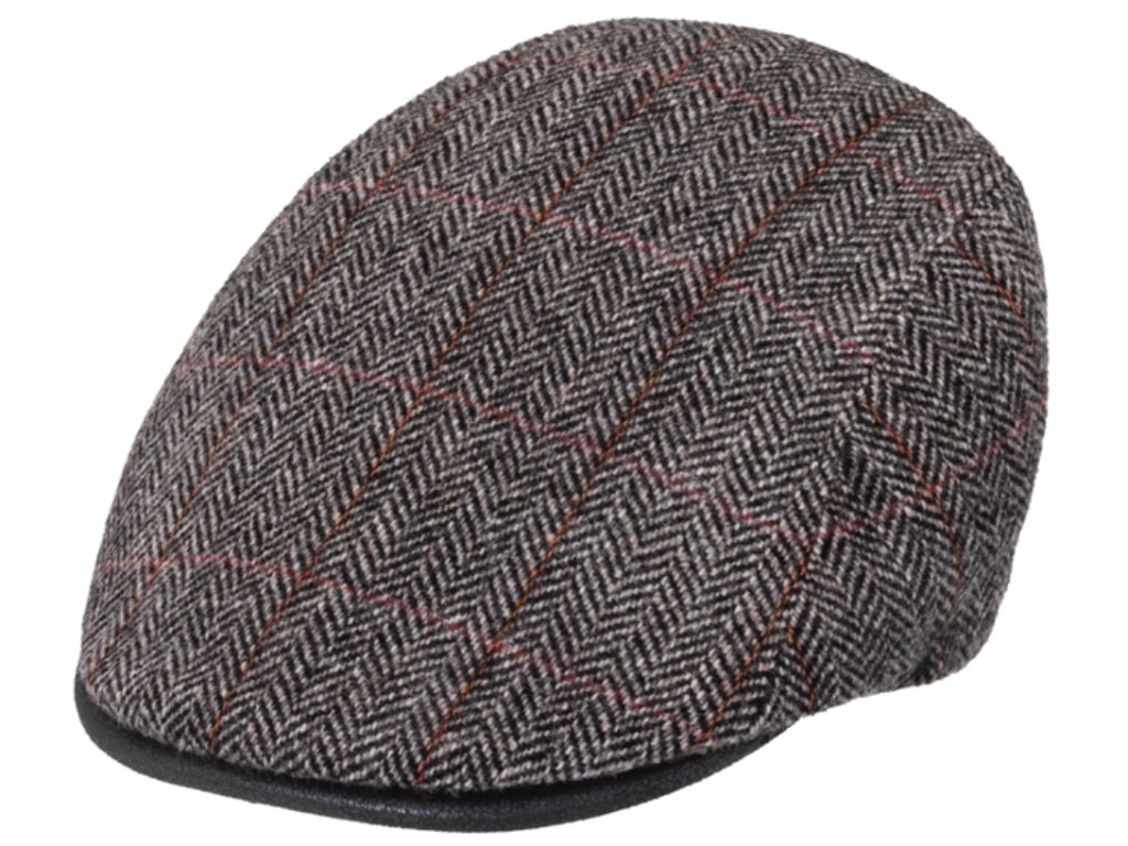 Pánska sivá kockovaná vlnená baretka rybia kosť - Fiebig