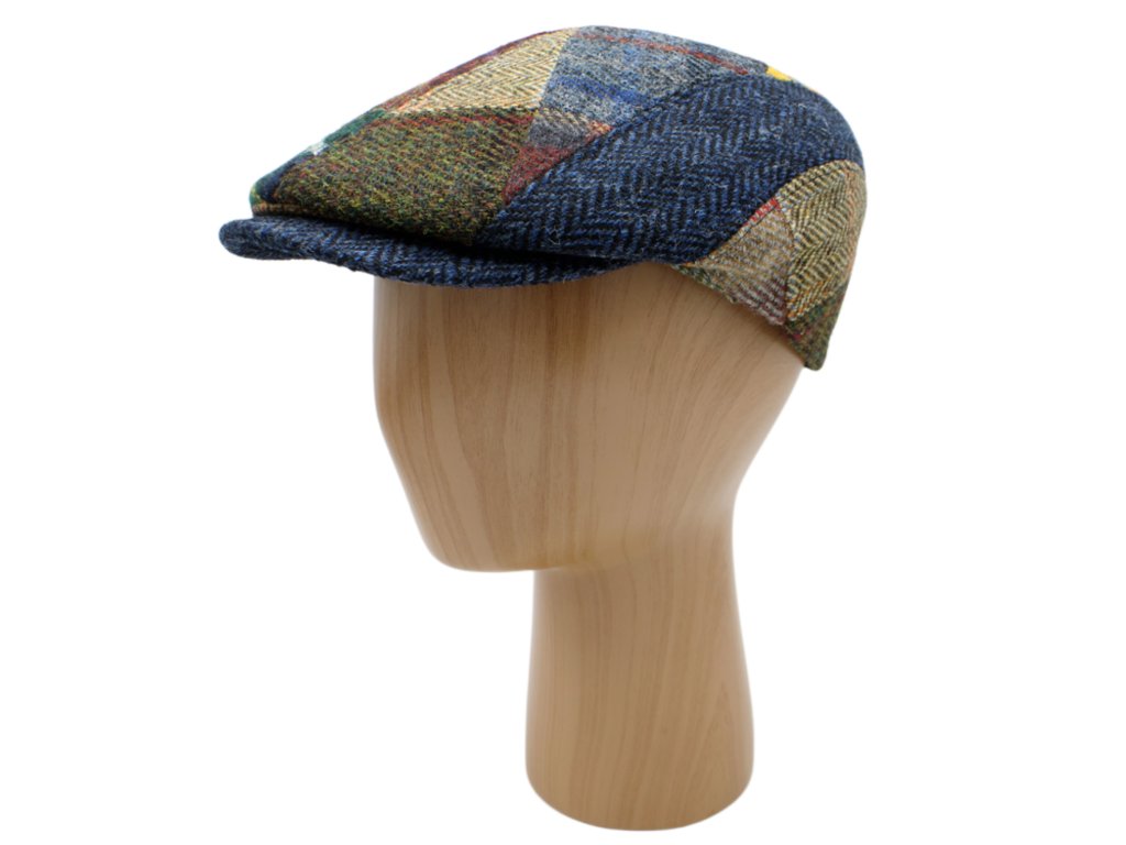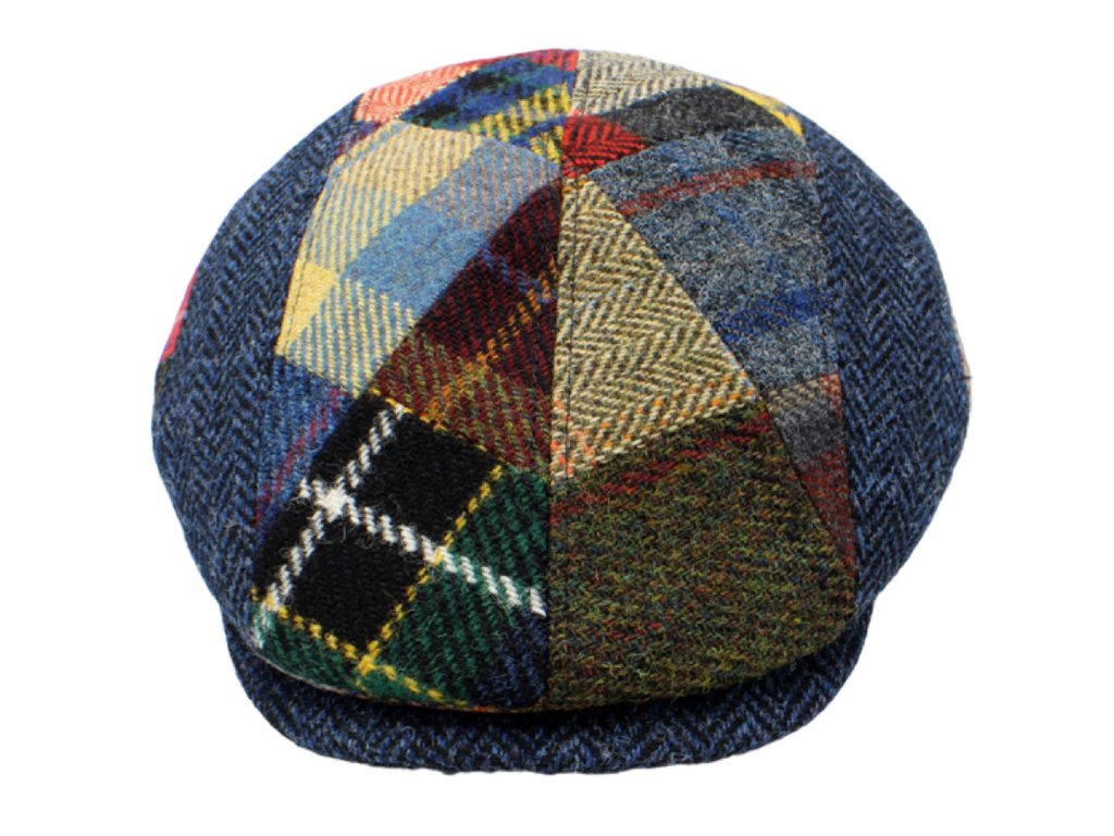 Pánska zimná vlnená baretka - Harris Tweed (patchwork)