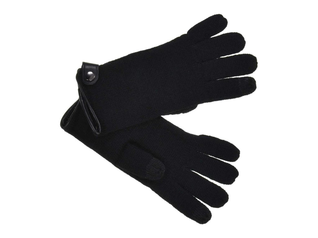 Pletené čierne dámske rukavice Seeberger s funkciou Touchscreen a ozdobným gombíkom