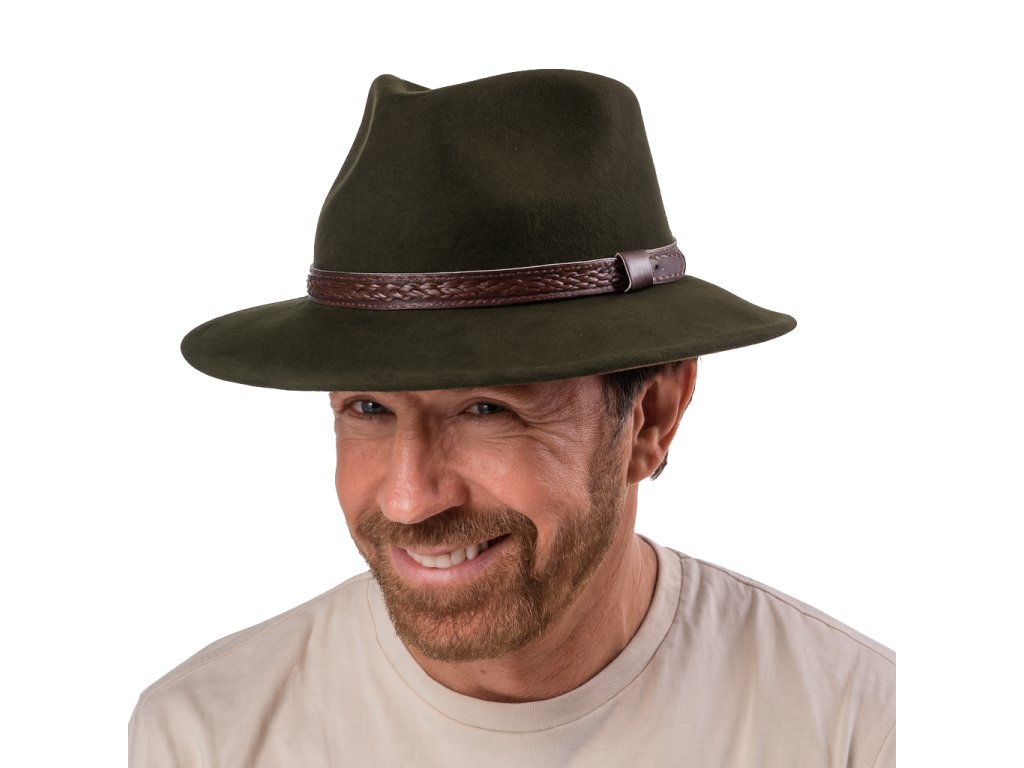 Cestovný klobúk vlnený od Fiebig - zelený s koženou stuhou - širák