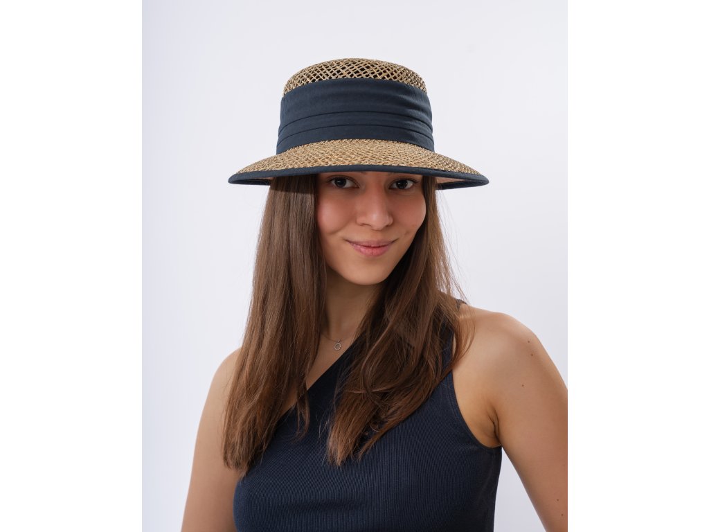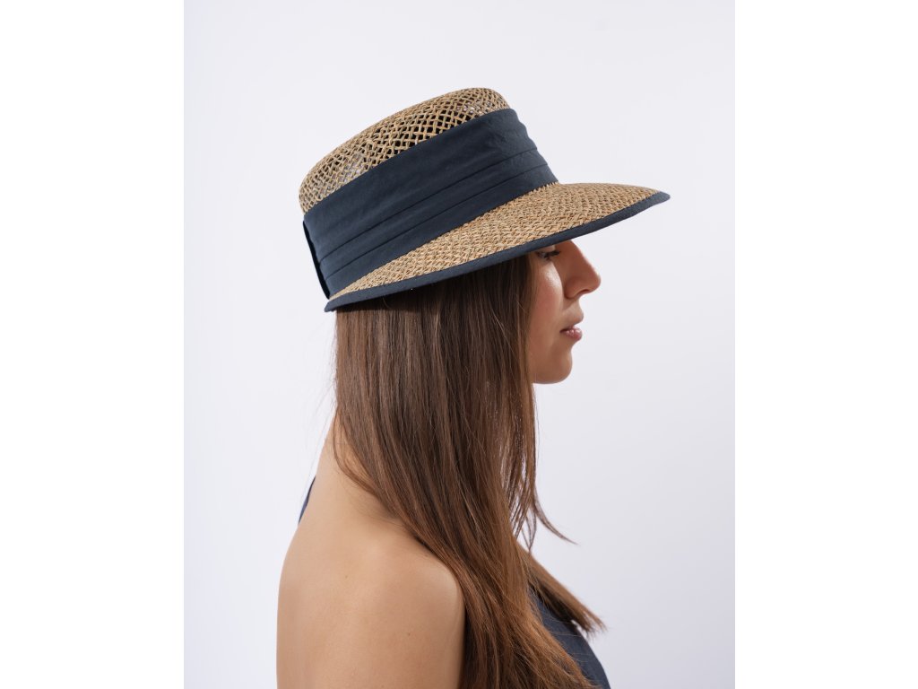 Slamený klobúk - šiltovka proti slnku - Seeberger - morská tráva s modrou stuhou