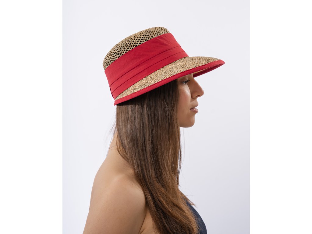 Slamený klobúk - slnečný klobúk - Seeberger - morská tráva s červenou stuhou
