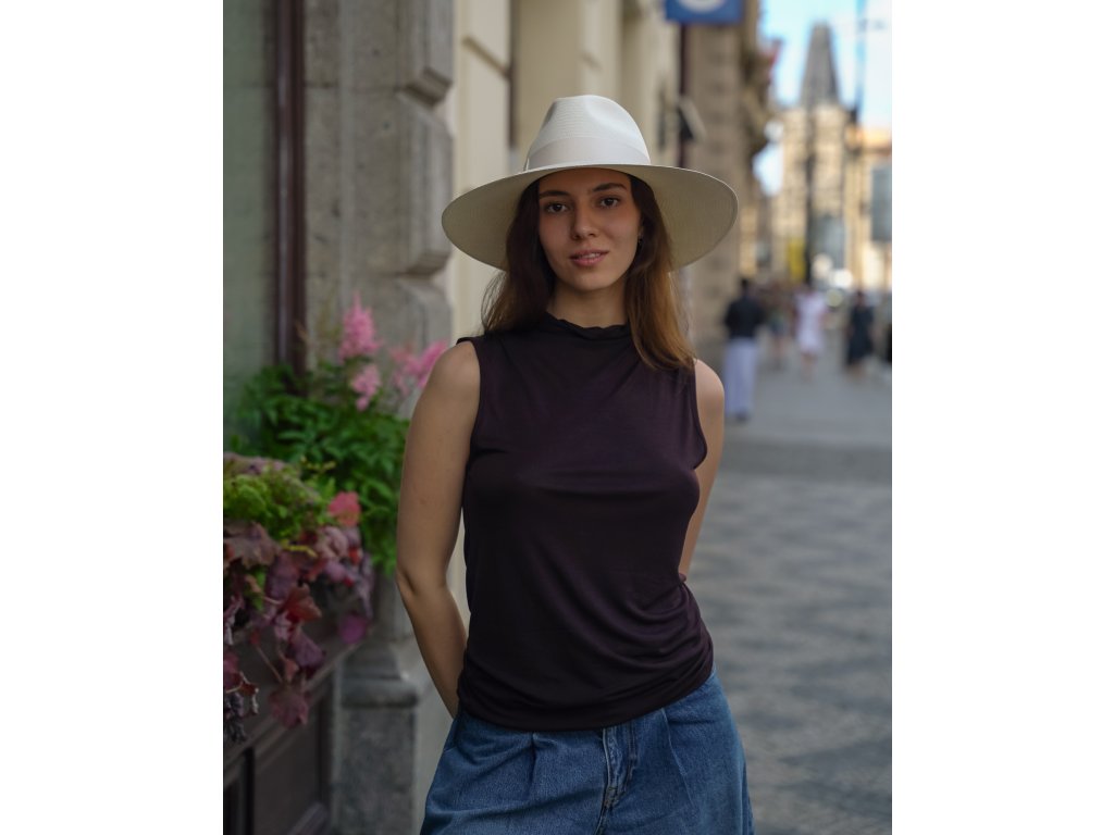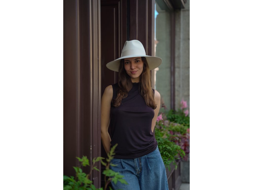 Sophie je vyrobená z jemnej panamy, prvotriedneho materiálu vytvoreného ručným pletením vlákien palmy Carludovica Palmata, známej ako paja toquilla. Tento tradičný remeselný postup, odovzdávaný po generácie, zaisťuje rovnomernú, jemnú väzbu s výnimočnými vlastnosťami - klobúk je ľahký, odolný a dokonale priedušný.