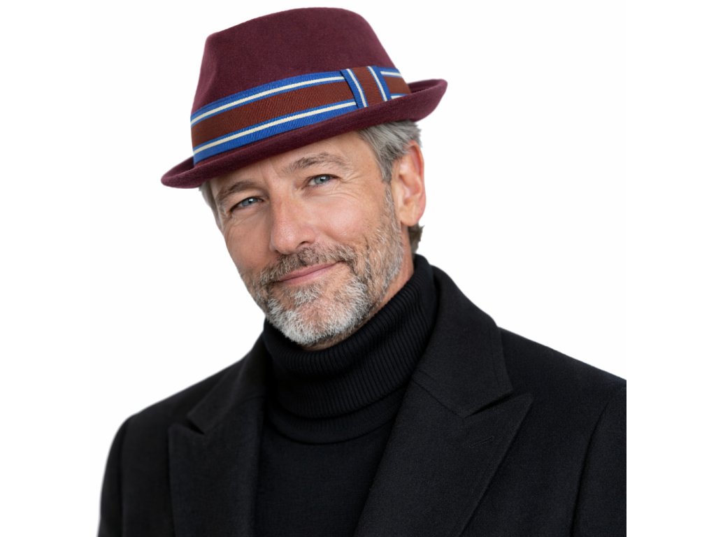 Trilby klobúk vlnený Fiebig - bordová s rypsovou stuhou